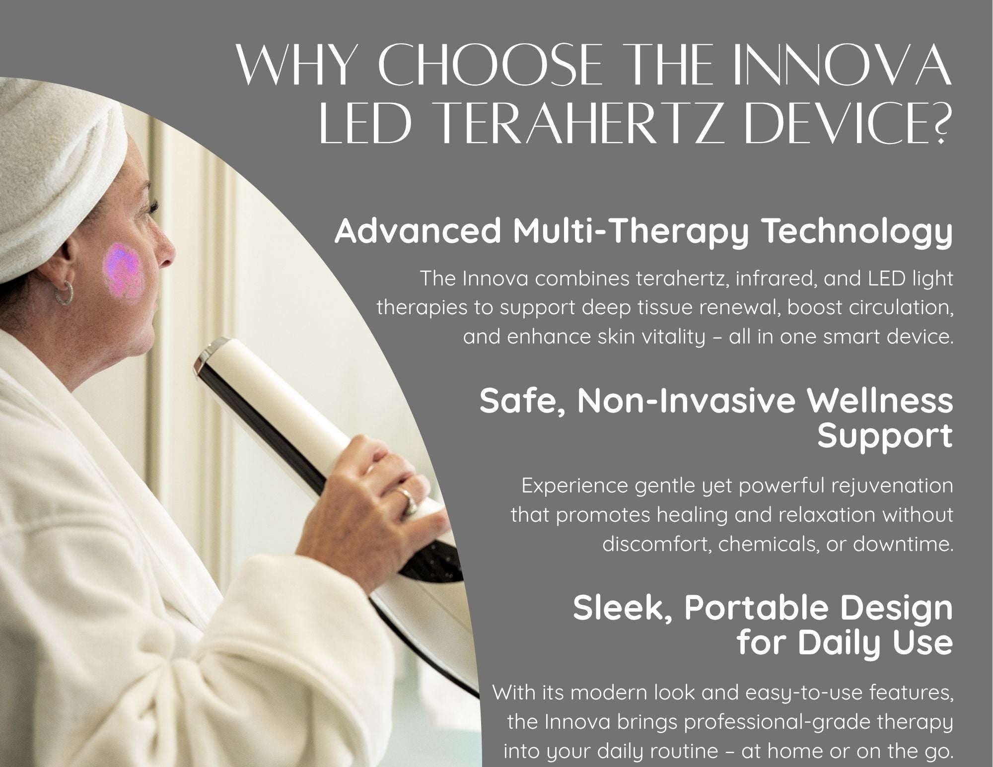 Try the Innova LED Terahertz Device and enjoy a new standard in beauty and wellness—perfect for radiant skin and a vibrant you.